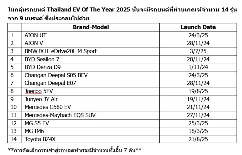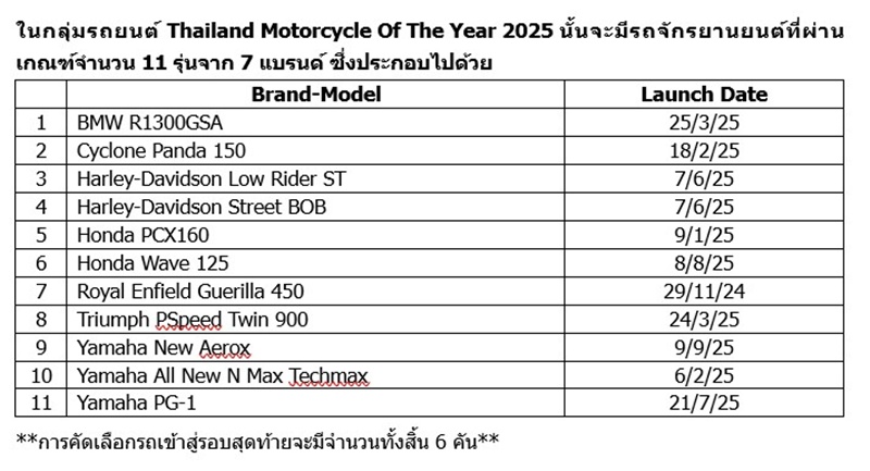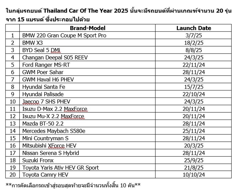 สมาคมผู้สื่อข่าวรถยนต์และรถจักรยานยนต์ไทย หรือ สรยท. ประกาศรายชื่อรถยนต์ รถยนต์ไฟฟ้า และรถจักรยานยนต์ที่ผ่านเกณฑ์การพิจารณาตามกรอบกติกาใหม่สำหรับทั้ง 3 รางวัลที่จะมอบให้ในปีนี้ออกมาแล้ว หลังจากที่ได้รับการพิจารณาจากคณะอนุกรรมการคัดเลือกรถประจำปี 2568 ซึ่งประกอบไปด้วยสื่อมวลชนอาวุโสและผู้ทรงคุณวุฒิที่คร่ำหวอดอยุ่ในสายข่าวยานยนต์ร่วมพิจารณาคุณสมบัติรถยนต์แต่ละรุ่นที่จะผ่านเข้ารอบตามเงื่อนไขที่กำหนดอย่างครบถ้วน ก่อนที่จะได้รถยนต์ รถยนต์ไฟฟ้า และรถจักรยานยนต์ที่ผ่านเกณฑ์รวมทั้งสิ้น 45 รุ่น ซึ่งประกอบด้วยรางวัล รถยนต์ยอดเยี่ยมประจำปี 2568 (Thailand Car Of The Year 2025), รถยนต์ไฟฟ้ายอดเยี่ยมประจำปี 2568 (Thailand EV Of The Year 2025) และรถจักรยานยนต์ยอดเยี่ยมประจำปี 2568 (Thailand Motorcycle Of The Year 2025)