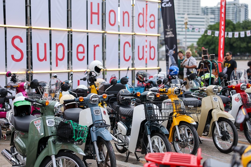 ไทยฮอนด้า จัดงานสุดพิเศษ “Super Cub THE ORIGINAL CLUB MEETING” รวมพลคนรักความคลาสสิกเฉลิมฉลองตำนานออริจินัลที่อยู่คู่คนไทยมากว่า 60 ปี พร้อมเปิดตัวรถจักรยานยนต์รุ่นใหม่ล่าสุด All New Honda Super Cub ที่มาพร้อม 2 สีทูโทนใหม่ สีฟ้า-ขาว และ สีเหลือง-ขาว สไตล์เรโทรสุดคลาสสิกสะท้อนความเป็นตัวตนได้เต็มที่ ภายใต้คอนเซปต์ ‘Find Your Original ถึงเวลาออริจินัล’ และรุ่นพิเศษ All New Super Cub FUJISAN Limited Edition ดีไซน์เรโทรมินิมอลสะท้อนความเป็นญี่ปุ่น ผลิตจำนวนจำกัดเพียง 500 คันเท่านั้น ท่ามกลางบรรยากาศสุดอบอุ่นที่รวบรวมเหล่าสาวก Super Cub จากทั่วประเทศที่ยกพลมาร่วมเฉลิมฉลองความคลาสสิกกว่า 200 คัน ณ Mahapho Riverview อีเวนต์สเปซริมแม่น้ำเจ้าพระยา ย่านทรงวาด