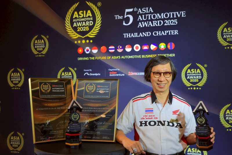 บริษัท ไทยฮอนด้า จำกัด ตอกย้ำบทบาทผู้นำวงการรถจักรยานยนต์ไทย ด้วยการคว้า 2 รางวัลจากเวทีประกาศรางวัลยานยนต์ระดับภูมิภาค “The 5th Asia Automotive Award 2025 – Thailand Chapter (AAA)” สะท้อนความสำเร็จทั้งด้านผลิตภัณฑ์ และเทคโนโลยีขององค์กรในระดับภูมิภาค ในส่วนของรางวัล Automotive Icon of the Year Award มอบให้แก่ “ก้อง” สมเกียรติ จันทรา นักแข่งรถจักรยานยนต์ชาวไทยผู้สร้างประวัติศาสตร์ในศึก MotoGP ในฐานะนักแข่งไทยคนแรกบนเวทีระดับโลก นับเป็นสัญลักษณ์แห่งความเป็นเลิศของวงการมอเตอร์สปอร์ตเอเชีย และเป็นบุคคลที่ได้รับการยอมรับอย่างสมศักดิ์ศรีสำหรับรางวัลในปีนี้ ตลอดจนบทบาทสำคัญในการยกระดับชื่อเสียงของประเทศไทย สร้างแรงบันดาลใจให้กับนักแข่งรุ่นใหม่ และช่วยผลักดันวัฒนธรรมมอเตอร์สปอร์ตของเอเชียให้เติบโตอย่างแข็งแกร่ง