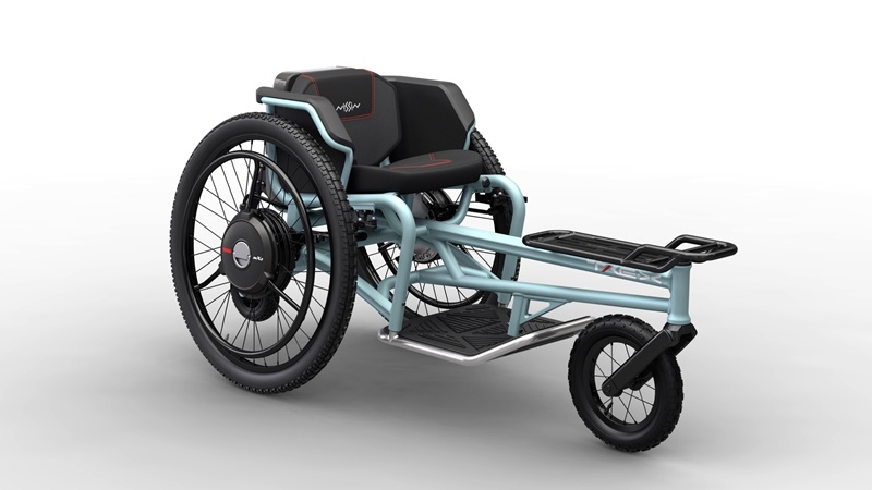 ต้นแบบรถวีลแชร์ไฟฟ้า 3 ล้อ ที่พัฒนาร่วมกับ Nissin Medical Industries ใช้ล้อขนาด 26 นิ้วแบบ Mountain Bike พร้อมระบบ JWX-2 Electric Power-Assist Unit มอบเสถียรภาพสูง และความสะดวกแม้ในเส้นทางขรุขระ